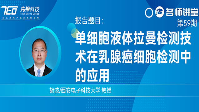 59期名師講堂馬上就要開講啦!『直播時間』:12月12日上午10:00-11:00 『主講老師』:西安電子科技大學教授—胡波 『報告主題』:單細胞液體拉曼檢測技術在乳腺癌細胞檢測中的應用12 2024-12 -