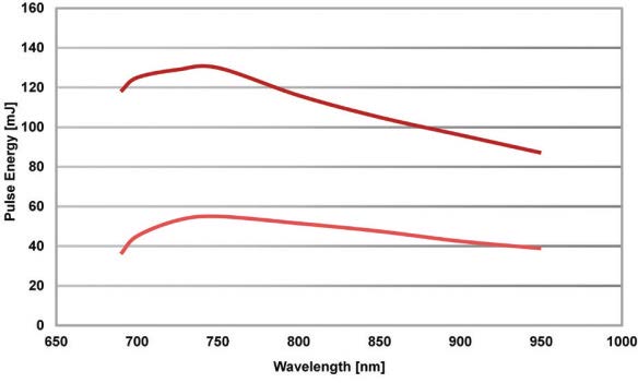 • 采用**環(huán)形OPO 振蕩腔體設(shè)計(jì),提高了OPO 的損傷閾值和泵浦效率,使用壽命長,最高能量輸出可達(dá)150mJ(光纖輸出120mJ)