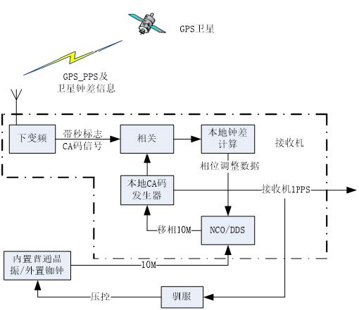 GPS由星載高性能銣鐘或銫鐘產生,其相位受地面站精確控制,因此其長期特性非常穩(wěn)定,高于普通的銣鐘、銫鐘或氫鐘。從而可利用其長期穩(wěn)定特性對晶振、如中等頻標進行校準。(以下馴服原理示意圖來源于網絡)