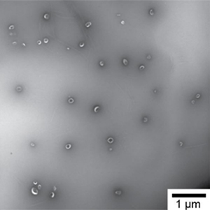 圖1顯示了投射電鏡下人類尿液里的囊泡。由于細(xì)胞會(huì)把囊泡釋放到周圍環(huán)境和體液中,故血液,唾液和尿液當(dāng)中都含有大量的細(xì)胞產(chǎn)生的囊泡。
