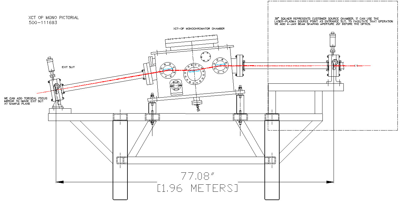 OP-XCT光譜儀使用環面鏡和平面光柵進行點對點成像,具有固定的入口和出口狹縫位置,掠入射離面光學系統效率高,時間展寬低,成像質量好,且易于使用。當作為串聯或雙單色儀時,滿足時間補償,這對于EUV和SXR短脈沖和超快激光的應用是有益的。光譜范圍取決于所選的衍射光柵——提供了四塊可選——通常是8-125nm(10-150eV)。獨特的非平面光柵幾何結構提供了非常高的衍射效率。它在時間相關和角度分辨的光電子能譜(ARPES)以及其他高能研究(如pinch、LPP、同步加速器)中是一種有效的光譜儀。