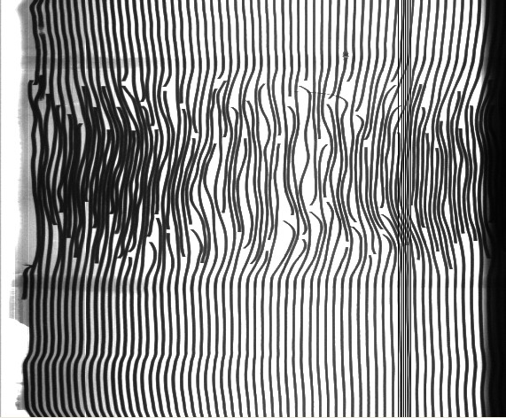 下圖是采用我司的X射線線陣探測系統采集到皮帶圖像:
