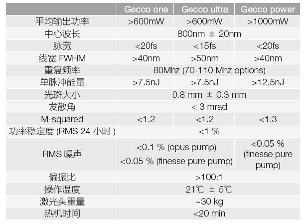鈦寶石超快振蕩器Gecco系列規(guī)格