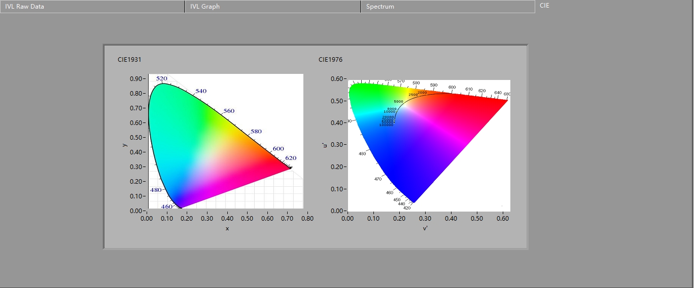 - 光學參數:亮度、XYZ三刺激值、CIE1931色坐標x,y、CIE1976色坐標u’ v’、峰值波長、光譜輻射度數據、CCT、EQE等