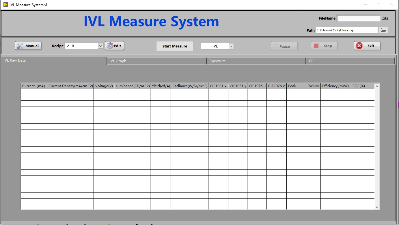 1、系統主要測試參數- IVL曲線繪制:IV曲線、電流密度、電流-亮度曲線、光效曲線、電流效率、流明效率
